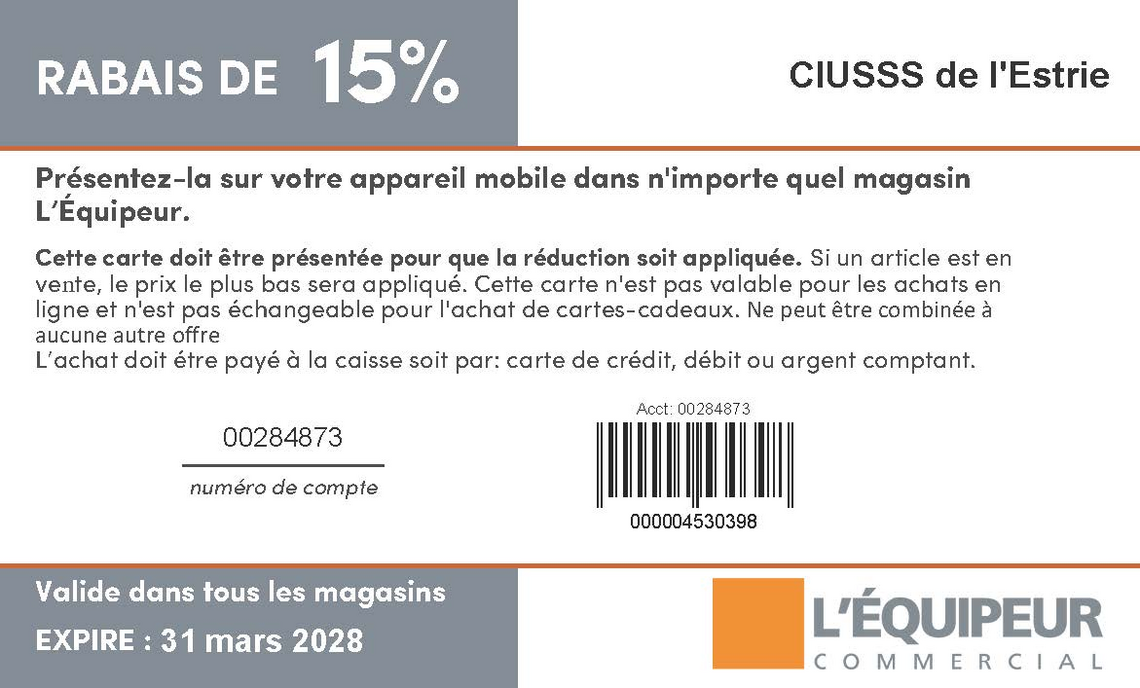 Un des avantages de travailler au CIUSSS de l'Estrie – CHUS, c’est de pouvoir profiter de nombreux rabais exclusifs et privilèges offerts par différents commerçants locaux.