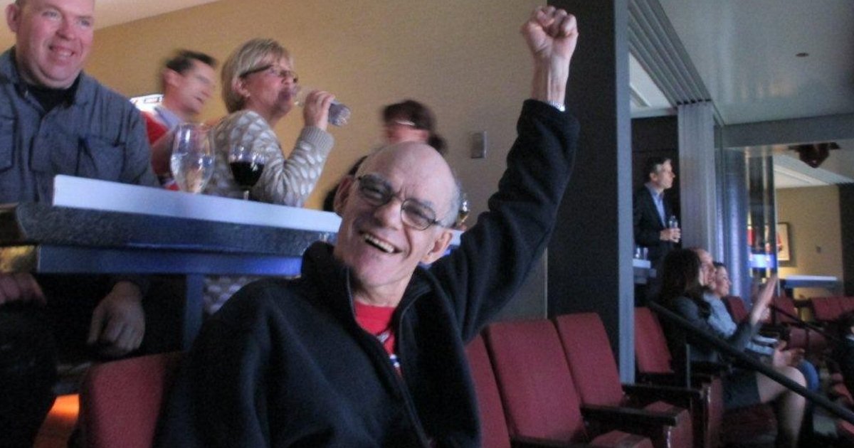 Résident du centre d’hébergement Saint-Vincent qui grâce à la générosité de la firme EXP a eu le privilège d’assister à une partie de hockey des Canadiens de Montréal.