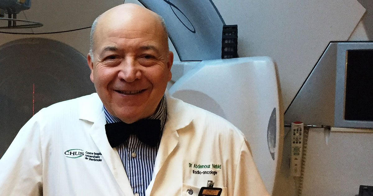 Les recherches du Dr Nabid – effectuées au CRCHUS – montrent qu’il est possible de diminuer de moitié la durée du traitement d’hormonothérapie, passant de 36 à 18 mois, et ce, sans diminuer le taux de survie des hommes atteints du cancer de la prostate. Jumelée à la radiothérapie, cette découverte permettrait d’améliorer la qualité de vie des patients en réduisant la durée du traitement et des effets secondaires désagréables. Découvrez-en plus sur Dr Nabid et ses travauxLe CRCHUS primé pour sa considération envers les patients