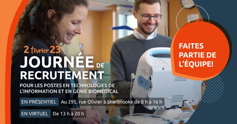 - Des membres des équipes des technologies de l'information, du génie biomédical et du recrutement sur place pour répondre à toutes vos questions.