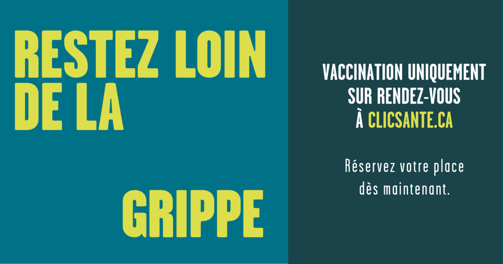 Prenez rendez-vous dès aujourd’hui sur ClicSanté.ca :- choisir « Vaccin grippe saisonnière »,