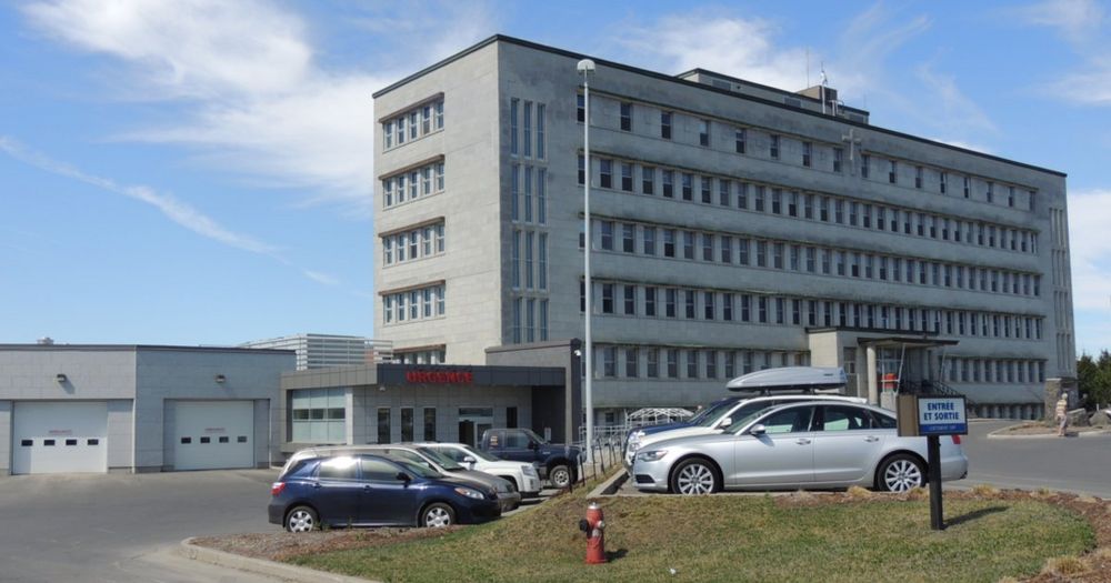 Érigée dans le stationnement de l'hôpital, la passerelle reliera l'urgence à une installation modulaire abritant un tomodensitomètre (scan).